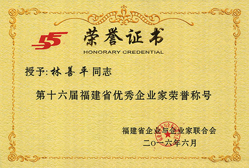 為弘揚優(yōu)秀企業(yè)家深化改革、科學(xué)管理、與時(shí)俱進(jìn)、勇于創(chuàng )新的開(kāi)拓精神,激勵廣大企業(yè)家敢為天下先、愛(ài)拼才會(huì )贏(yíng)的闖勁,為推動(dòng)福建省產(chǎn)業(yè)轉型升級和經(jīng)濟持續健康發(fā)展建功立業(yè),近日,福建省企業(yè)與企業(yè)家聯(lián)合會(huì )組織開(kāi)展了每?jì)赡暝u選一次的福建省優(yōu)秀企業(yè)家評選工作,并于2016年6月24日決定授予98位企業(yè)經(jīng)營(yíng)管理者“第十六屆福建省優(yōu)秀企業(yè)家”榮譽(yù)稱(chēng)號,虹潤公司董事長(cháng)林善平榮獲該榮譽(yù)稱(chēng)號。