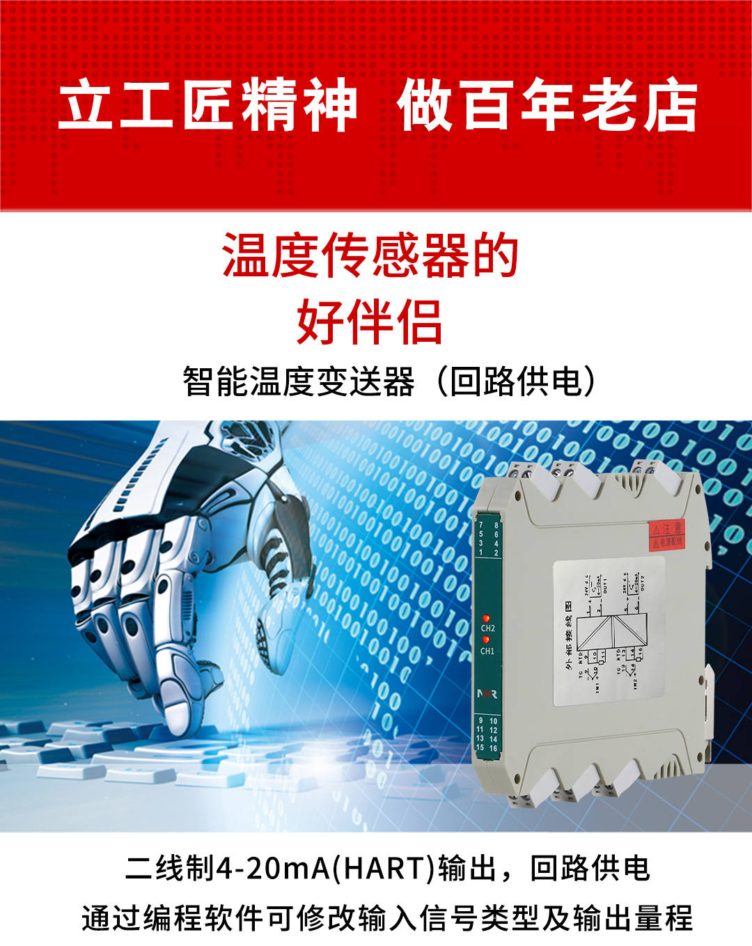 虹潤公司是專(zhuān)業(yè)生產(chǎn)溫度變送器的國家專(zhuān)精特新“小巨人”企業(yè)。生產(chǎn)的HART智能溫度變送器,具有適配各類(lèi)溫度傳感器,通過(guò)編程線(xiàn)修改輸入信號類(lèi)型及量程,二線(xiàn)制4-20Ma(HART)輸出,回路供電等特點(diǎn)。該產(chǎn)品不僅通過(guò)HART基金會(huì )認證、德國萊茵 CE 認證與 SIL 功能安全認證,還獲得具備減震抗干擾能力的溫度變送器、信號隔離器、一種二端子模塊、無(wú)源信號隔離器等4項國家發(fā)明專(zhuān)利,主持起草物聯(lián)網(wǎng)智能溫度儀表、現場(chǎng)設備工具(FDT)接口規范、工業(yè)過(guò)程測量和控制系統用溫度變送器等3項國家標準,以及通信系統多通道數據采集控制終端規范軍用標準,參與國際5G標準制定,取得HART溫度變送器、智能溫度變送器等5項相關(guān)軟件著(zhù)作權。產(chǎn)品廣泛應用于石油、化工、電力、冶金、制藥、食品、水處理等各種工業(yè)領(lǐng)域。