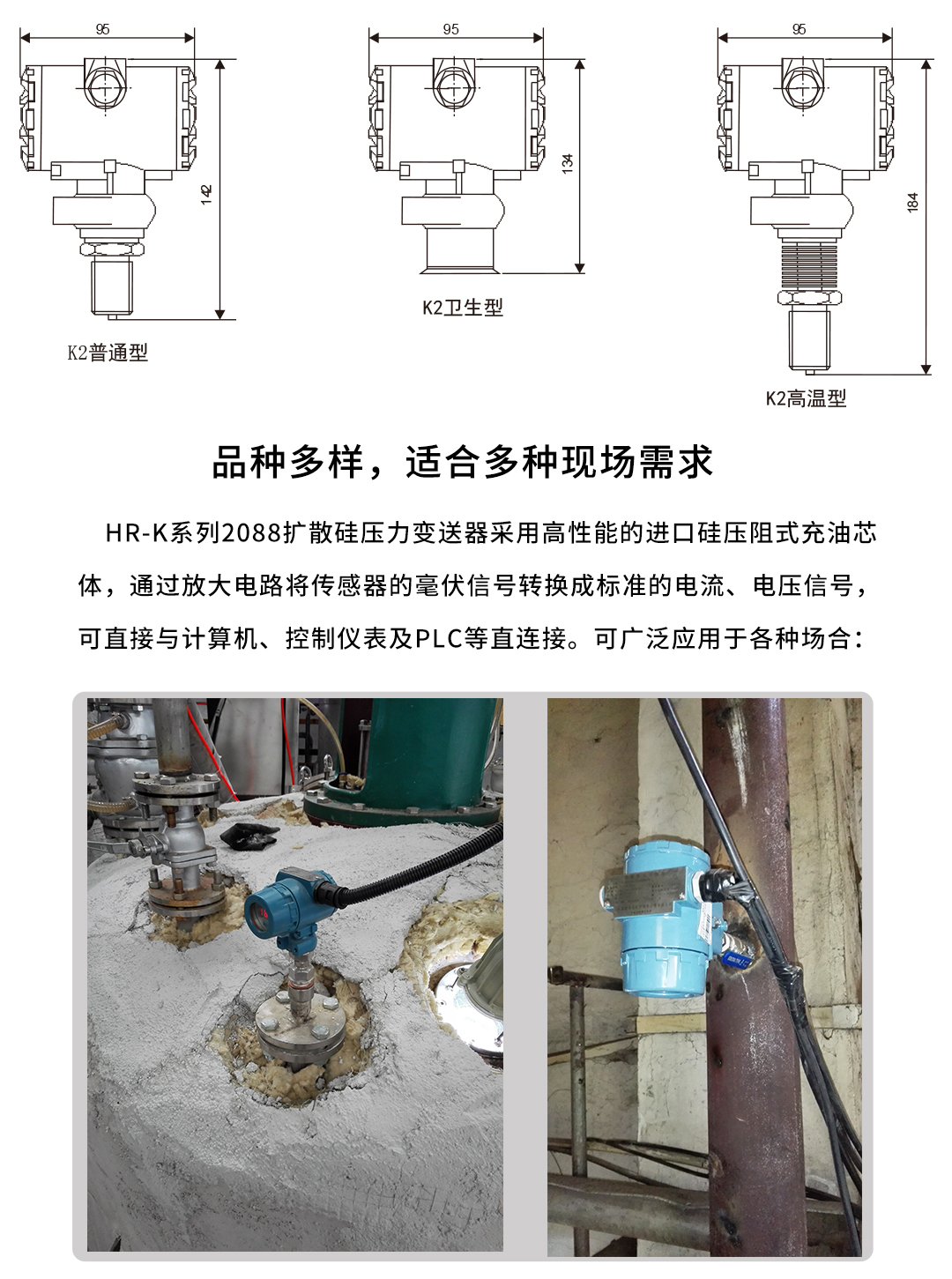 虹潤公司是專(zhuān)業(yè)生產(chǎn)壓力變送器的國家專(zhuān)精特新“小巨人”企業(yè),生產(chǎn)的擴散硅壓力變送器,具有精度高,穩定性好,響應速度快,高可靠性,抗過(guò)載和抗沖擊能力強,安裝方便等特點(diǎn)。產(chǎn)品獲得一種數字顯示低功耗壓力表、一種信號發(fā)生器裝置等2項國家發(fā)明專(zhuān)利,主持起草工業(yè)過(guò)程控制系統用模擬輸入兩位或多位輸出儀表、工業(yè)過(guò)程測量和控制系統用壓力/差壓變送器等2項國家標準,通信系統多通道數據采集控制終端規范軍用標準,以及現場(chǎng)設備集成等5項智能制造國家標準。參與國際5G標準制定,取得數顯壓力表等2項相關(guān)軟件著(zhù)作權。產(chǎn)品廣泛應用于化工、食品、制藥、電力、設備配套、供暖、水處理、樓宇等行業(yè),需精準測量流體壓力的現場(chǎng)。