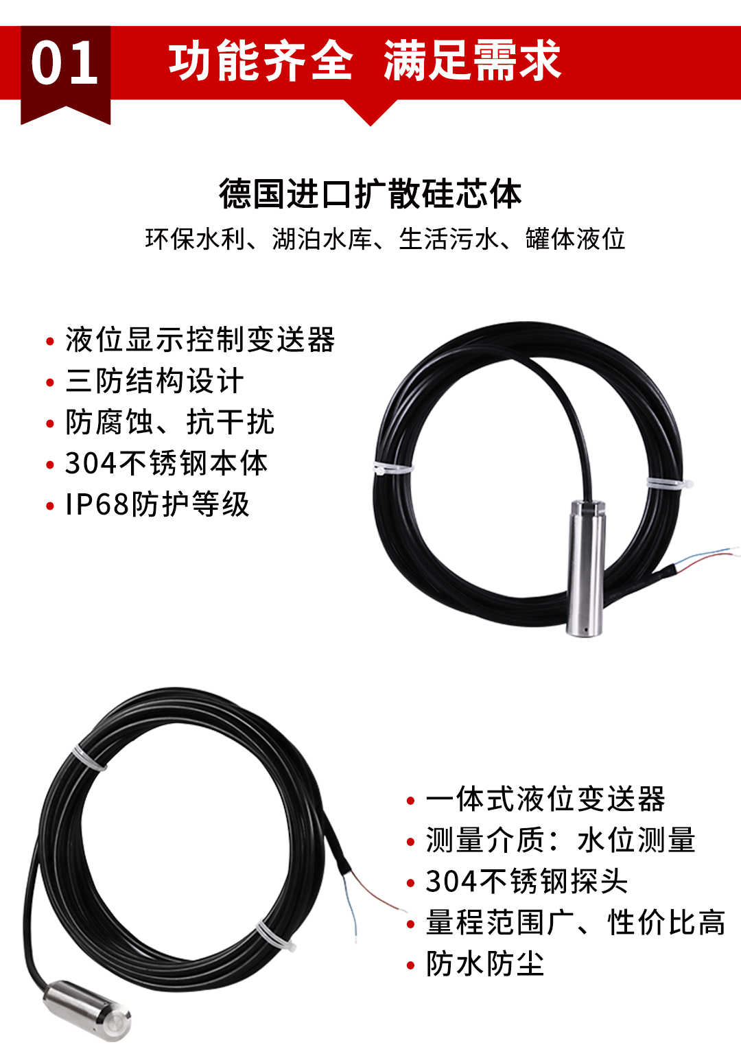 虹潤公司是專(zhuān)業(yè)生產(chǎn)液位變送器的國家專(zhuān)精特新“小巨人”企業(yè),生產(chǎn)的投入式液位變送器,具有采用進(jìn)口芯體,精準測量,過(guò)壓保護,高抗干擾,IP68防護等級等特點(diǎn)。產(chǎn)品獲得一種數字顯示低功耗壓力表、一種信號發(fā)生器裝置等2項國家發(fā)明專(zhuān)利,主持起草工業(yè)過(guò)程控制系統用模擬輸入兩位或多位輸出儀表、工業(yè)過(guò)程測量和控制系統用壓力/差壓變送器等2項國家標準,通信系統多通道數據采集控制終端規范軍用標準,以及現場(chǎng)設備集成等5項智能制造國家標準。參與國際5G標準制定,取得數顯壓力表等2項相關(guān)軟件著(zhù)作權。產(chǎn)品廣泛應用于電力、冶金、農業(yè)、食品、制藥、水處理等對液位監測需求的行業(yè)領(lǐng)域。