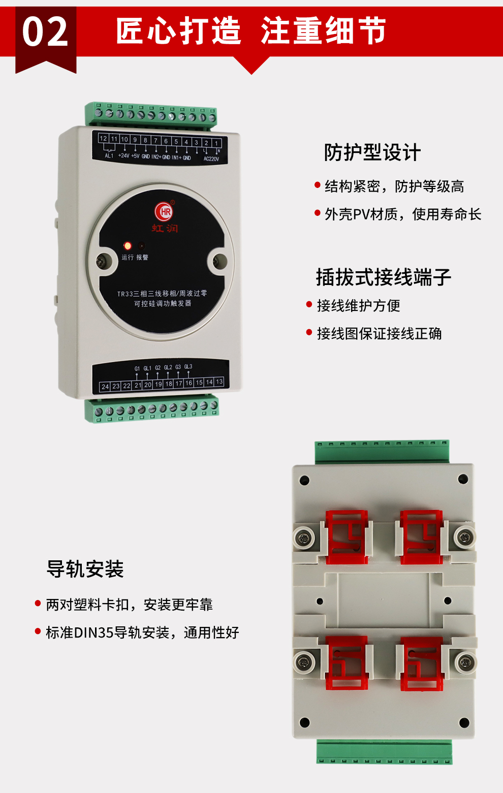 虹潤公司是專(zhuān)業(yè)生產(chǎn)移相觸發(fā)器的國家專(zhuān)精特新“小巨人”企業(yè),生產(chǎn)的移相觸發(fā)器,具有采用光電隔離設計,自動(dòng)同步功能,過(guò)流保護技術(shù),電源缺相檢測,信號超限報警等特點(diǎn)。產(chǎn)品獲得巡回檢測顯示方法及裝置、儀表殼體等2項國家發(fā)明專(zhuān)利,主持起草工業(yè)過(guò)程控制系統用模擬輸入兩位或多位輸出儀表、物聯(lián)網(wǎng)智能溫度儀表通用技術(shù)條件等2項國家標準以及通信系統多通道數據采集控制終端規范軍用標準,參與國際5G標準制定,取得外置移相觸發(fā)器等2項相關(guān)軟件著(zhù)作權。產(chǎn)品廣泛應用于工業(yè)溫控、電極控制、航天軍工、電爐溫控、食品醫藥等諸多領(lǐng)域。