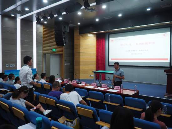 決賽之前,林善平先生給學(xué)生們作了題為“匠心打造,虹潤智能制造”的講座,林先生圍繞虹潤集團傳承的“工匠精神”和“傳統文化”,向學(xué)生們講述了虹潤如何通過(guò)不斷尋求發(fā)展道路、不斷發(fā)現問(wèn)題解決問(wèn)題,從“中國最好”走向“世界最好”的過(guò)程。講座后同學(xué)們就科技創(chuàng )新、大學(xué)生創(chuàng )業(yè)等感興趣的方面向林先生提問(wèn),林先生一一做了耐心解答,現場(chǎng)氣氛活躍。