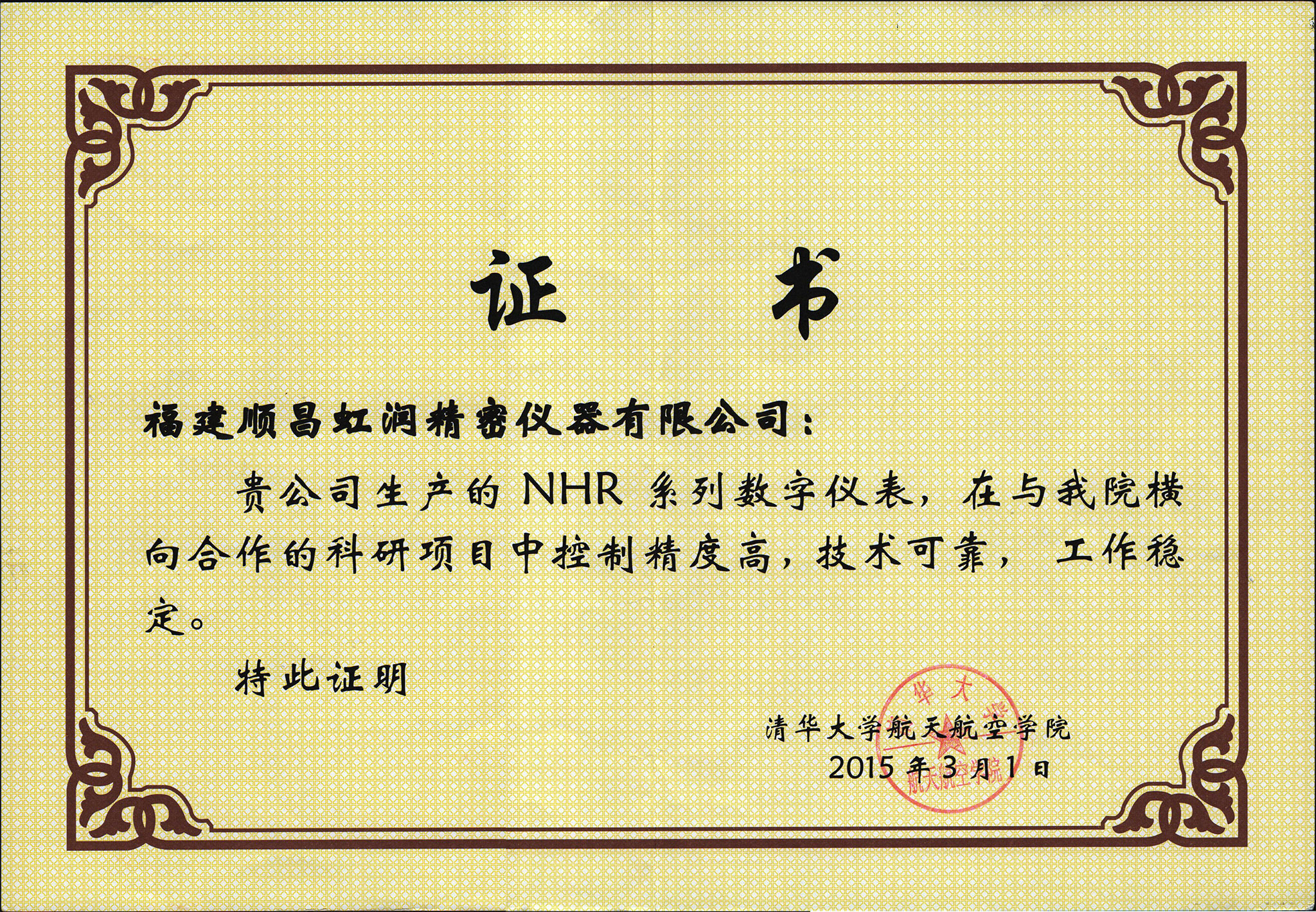 近日,由虹潤公司生產(chǎn)的自動(dòng)化顯示控制儀表產(chǎn)品,成功應用于清華大學(xué)航空航天學(xué)院橫向合作科研項目,因控制精準,抗干擾性強,運行穩定,受到了清華大學(xué)航空航天學(xué)院科研項目組的廣泛好評,并向虹潤公司頒發(fā)了證書(shū)。