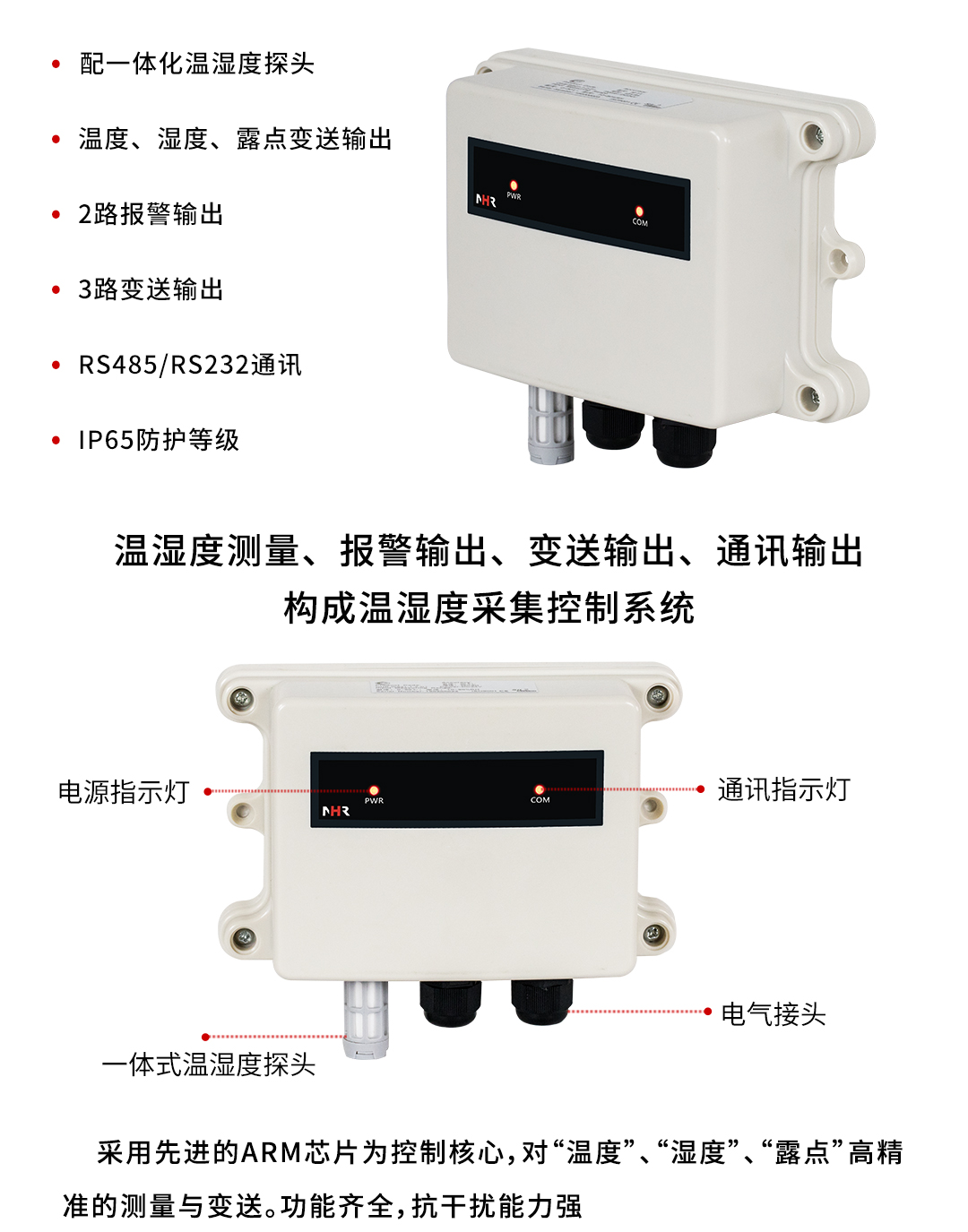 虹潤公司是專(zhuān)業(yè)生產(chǎn)環(huán)境監測儀表的國家專(zhuān)精特新“小巨人”企業(yè)。生產(chǎn)的一體式溫濕度變送器,具有溫度、濕度、露點(diǎn)高精準的測量與變送,報警繼電器輸出,RS485/RS232通訊,IP65防護等級等特點(diǎn)。產(chǎn)品獲得一種手持式低功耗溫濕度檢測儀、大屏幕溫濕度記錄儀等2項國家發(fā)明專(zhuān)利,主持起草物聯(lián)網(wǎng)智能溫度儀表通用技術(shù)條件、冷鏈溫度記錄儀等2項國家標準,以及通信系統多通道數據采集控制終端規范軍用標準,以及現場(chǎng)設備集成等5項智能制造國家標準,參與國際5G標準制定,取得溫濕度儀表等3項相關(guān)軟件著(zhù)作權。產(chǎn)品廣泛應用于工業(yè)現場(chǎng)、農業(yè)大棚、倉儲物流、地下管廊、養殖孵化、配電機房等諸多領(lǐng)域。