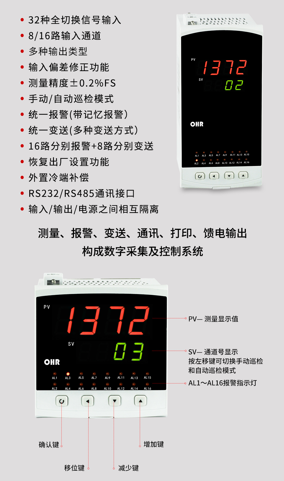 虹潤公司是專(zhuān)業(yè)生產(chǎn)多路溫度巡檢儀的國家專(zhuān)精特新“小巨人”企業(yè),生產(chǎn)的增強型多路巡檢儀,具有8路/16路測量通道,全切換信號輸入,多種輸出類(lèi)型,高抗干擾,RS485/RS232通訊等特點(diǎn)。產(chǎn)品獲得巡回檢測顯示方法及裝置、儀表殼體等2項國家發(fā)明專(zhuān)利,主持起草工業(yè)過(guò)程控制系統用模擬輸入兩位或多位輸出儀表、物聯(lián)網(wǎng)智能溫度儀表通用技術(shù)條件等2項國家標準,以及通信系統多通道數據采集控制終端規范軍用標準,參與國際5G標準制定,取得多回路測量顯示控制儀等3項相關(guān)軟件著(zhù)作權。產(chǎn)品廣泛應用于電力、石化、冶金、制藥、水處理、機械配套等各種工業(yè)現場(chǎng)。