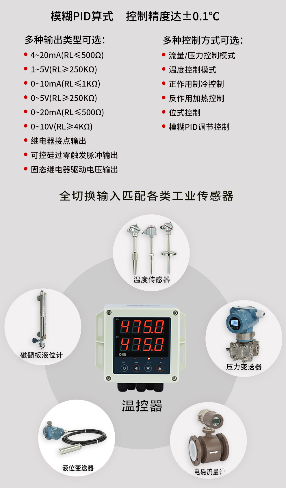 虹潤公司是專(zhuān)業(yè)生產(chǎn)溫控器的國家專(zhuān)精特新“小巨人”企業(yè)。生產(chǎn)的壁掛式PID溫控器,具有全切換信號輸入,真正人工智能算式,控制精度達士0.1°C,防護等級高,RS485通訊輸出DN等特點(diǎn)。產(chǎn)品獲得模糊PID控制儀及控制方法、人工智能調節器、智能化控制器、移相觸發(fā)控制器、閥門(mén)自動(dòng)手動(dòng)無(wú)擾動(dòng)操作控制方法及裝置等5項國家發(fā)明專(zhuān)利,主持起草主持起草工業(yè)過(guò)程控制系統用模擬輸入兩位或多位輸出儀表、物聯(lián)網(wǎng)智能溫度儀表通用技術(shù)條件、工業(yè)過(guò)程測量和控制系統用智能調節器等3項國家標準,以及通信系統多通道數據采集控制終端規范軍用標準。參與國際5G標準制定,取得傻瓜式PID調節儀等3項相關(guān)軟件著(zhù)作權。產(chǎn)品廣泛應用于電力、石化,冶金、制藥、食品等幾乎所有工業(yè)現場(chǎng),實(shí)現精準控溫,保障生產(chǎn)安全與質(zhì)量。