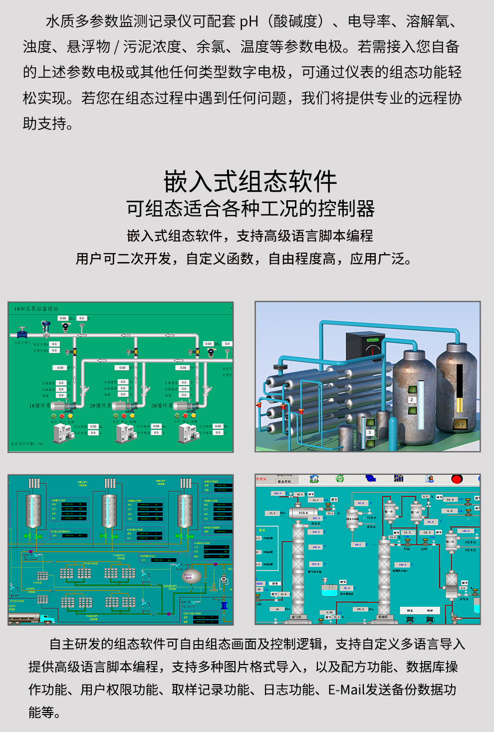 虹潤公司是專(zhuān)業(yè)生產(chǎn)水質(zhì)分析儀的國家專(zhuān)精特新“小巨人”企業(yè)。生產(chǎn)的水質(zhì)多參數監測記錄儀,具有多參數采集同屏顯示,數據記錄與轉存,支持WiFi或4G實(shí)現數據云方案,內置與外配組態(tài)軟件等特點(diǎn)。產(chǎn)品獲得一種適應性強PH控制儀、嵌入式數據采集工作站、數據采集控制工作站、無(wú)紙記錄儀、智能化控制器等5項國家發(fā)明專(zhuān)利;主持起草通信系統多通道數據采集控制終端規范軍用標準,物聯(lián)網(wǎng)智能記錄儀表通用技術(shù)條件國家標準,以及現場(chǎng)設備集成等5項智能制造國家標準,參與國際5G標準制定;取得PH無(wú)紙記錄儀等7項相關(guān)軟件著(zhù)作權。產(chǎn)品廣泛應用于實(shí)驗室、水處理、環(huán)境監測、食品、制藥、農業(yè)、工業(yè)流程控制等諸多領(lǐng)域。