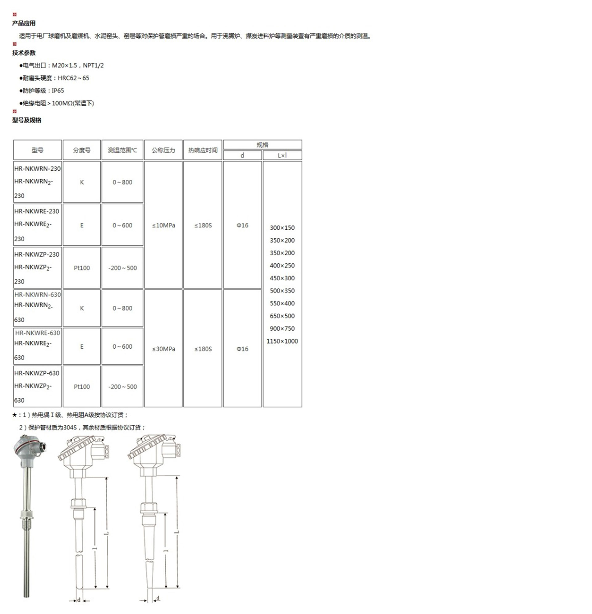 耐磨熱電偶(阻)采用等離子噴漆技術(shù)、高鉻鑄鐵和高溫合金不同材料制成的耐磨保護管,專(zhuān)門(mén)為高、中、低溫耐磨環(huán)境的測量場(chǎng)合設計制造的,可適用于循環(huán)流化床、沸騰爐、水泥回轉窯尾煙室